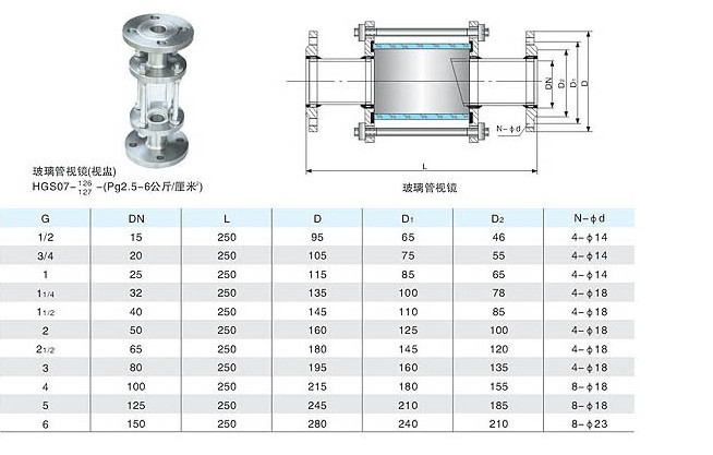 HGS07-126/127玻璃管視鏡(視蠱):用于排液或受槽前的回流,冷卻水等液體管路上以觀察液體流動情況。 閥體材料:有碳鋼、不銹鋼、襯膠、襯氟等多種。 公稱壓力范圍:有2.5、6公斤/厘米2兩種。 工作溫度:金屬≤200℃,塑料≤80℃,允許急變溫度80℃ 公稱直徑:DN15~DN150 。